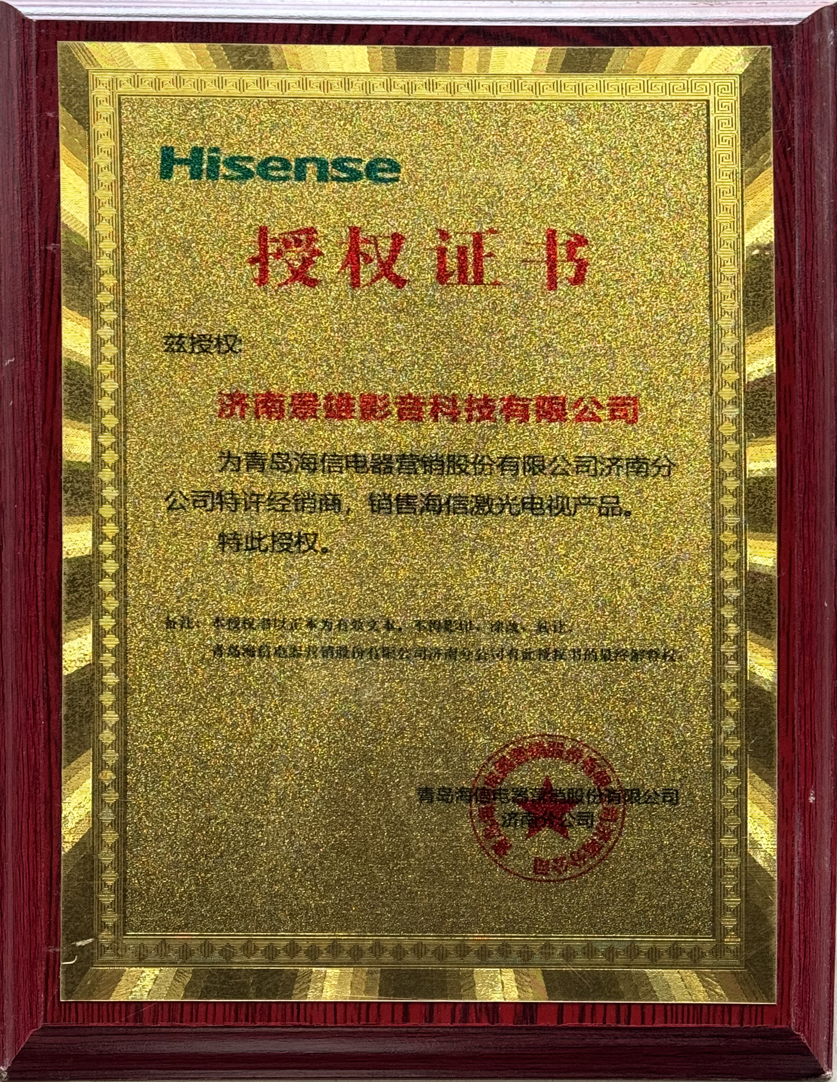 海信激光電視授權書